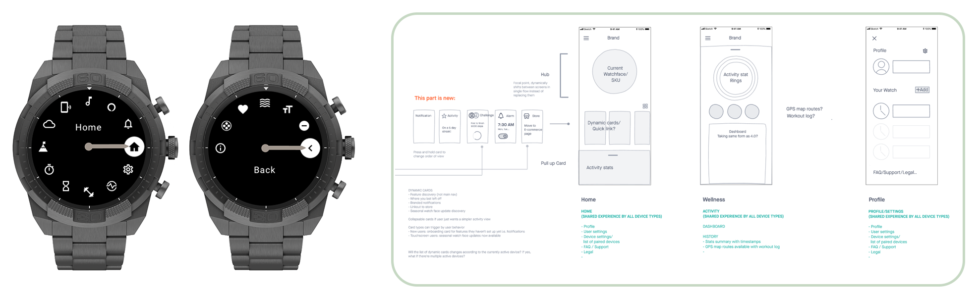To advance Fossil’s E-ink hybrid category, I led a comprehensive GUI redesign to address the usability gaps of the first-generation release in tandem with a fully reimagined companion app.