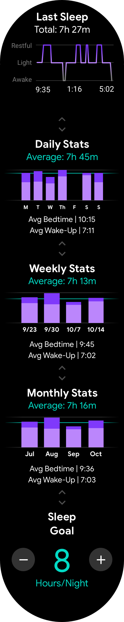 Activity consumes only 33% of the energy of Google Fit and allows for up to 4 hours of continuous GPS tracking. Sleep and Cardio Fitness tracking are enabled by the improved +24 hours of regular battery life, providing previously unavailable analytics on Wear OS devices.